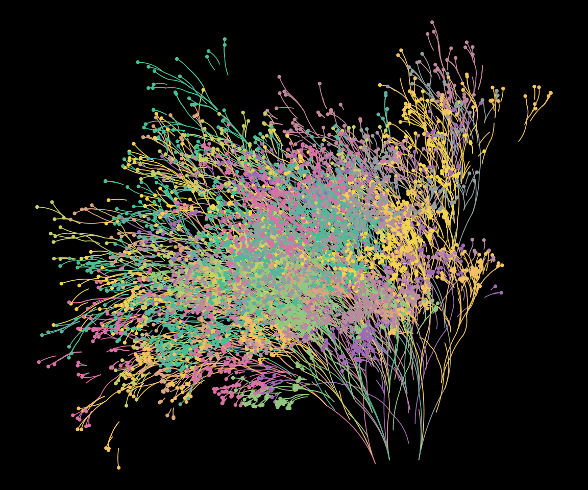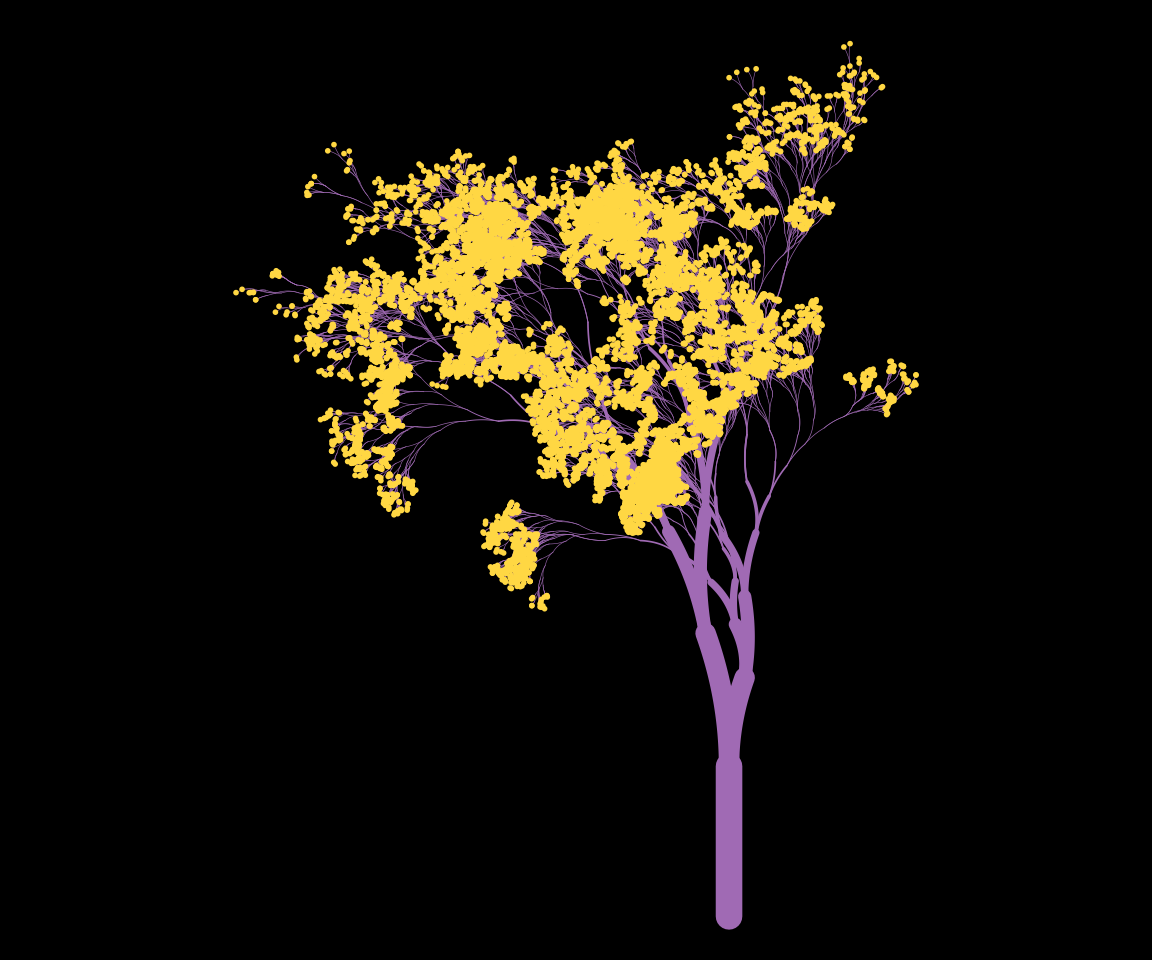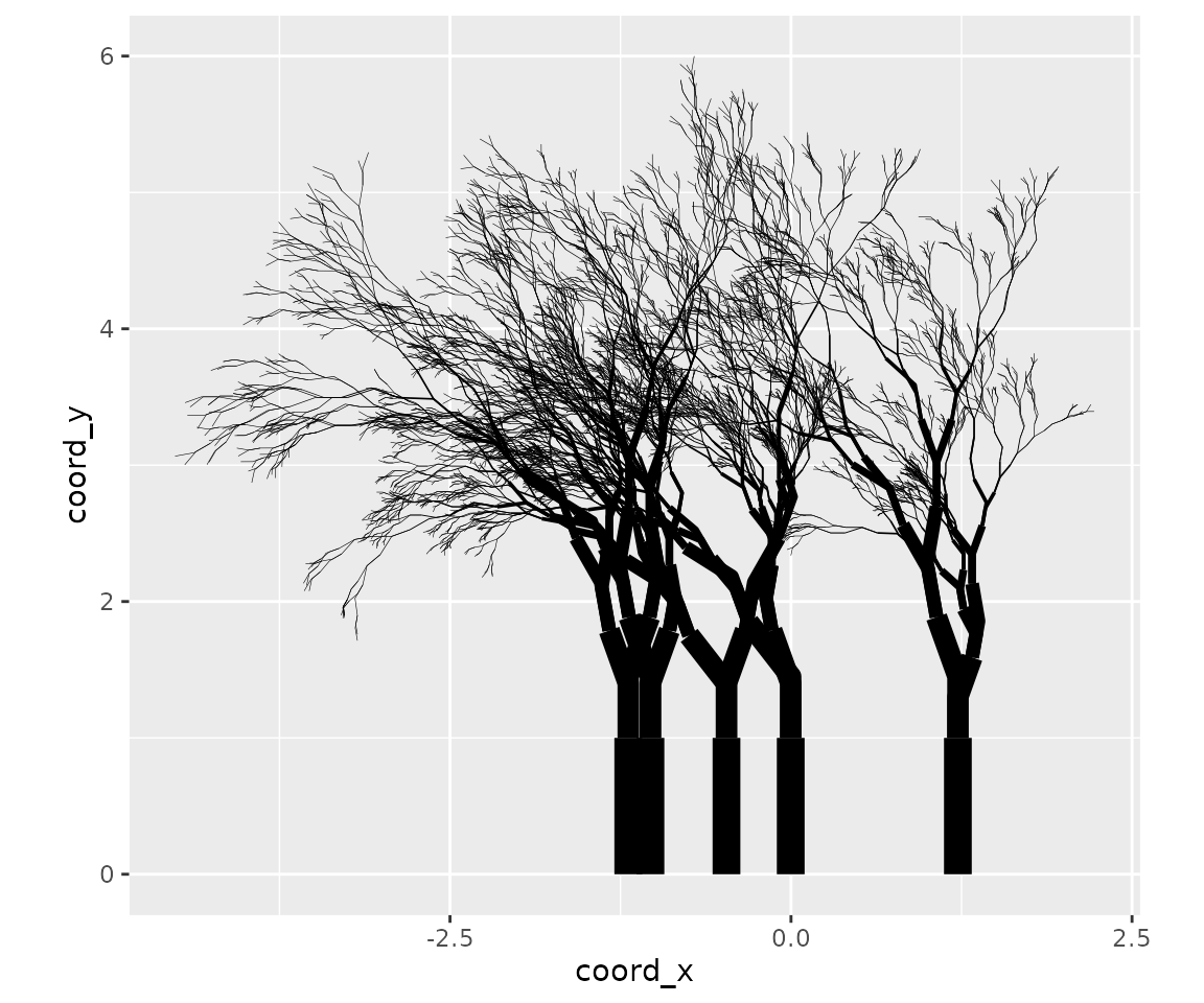 bodies are uniform in colour, and coloured “leaves” are drawn at the top